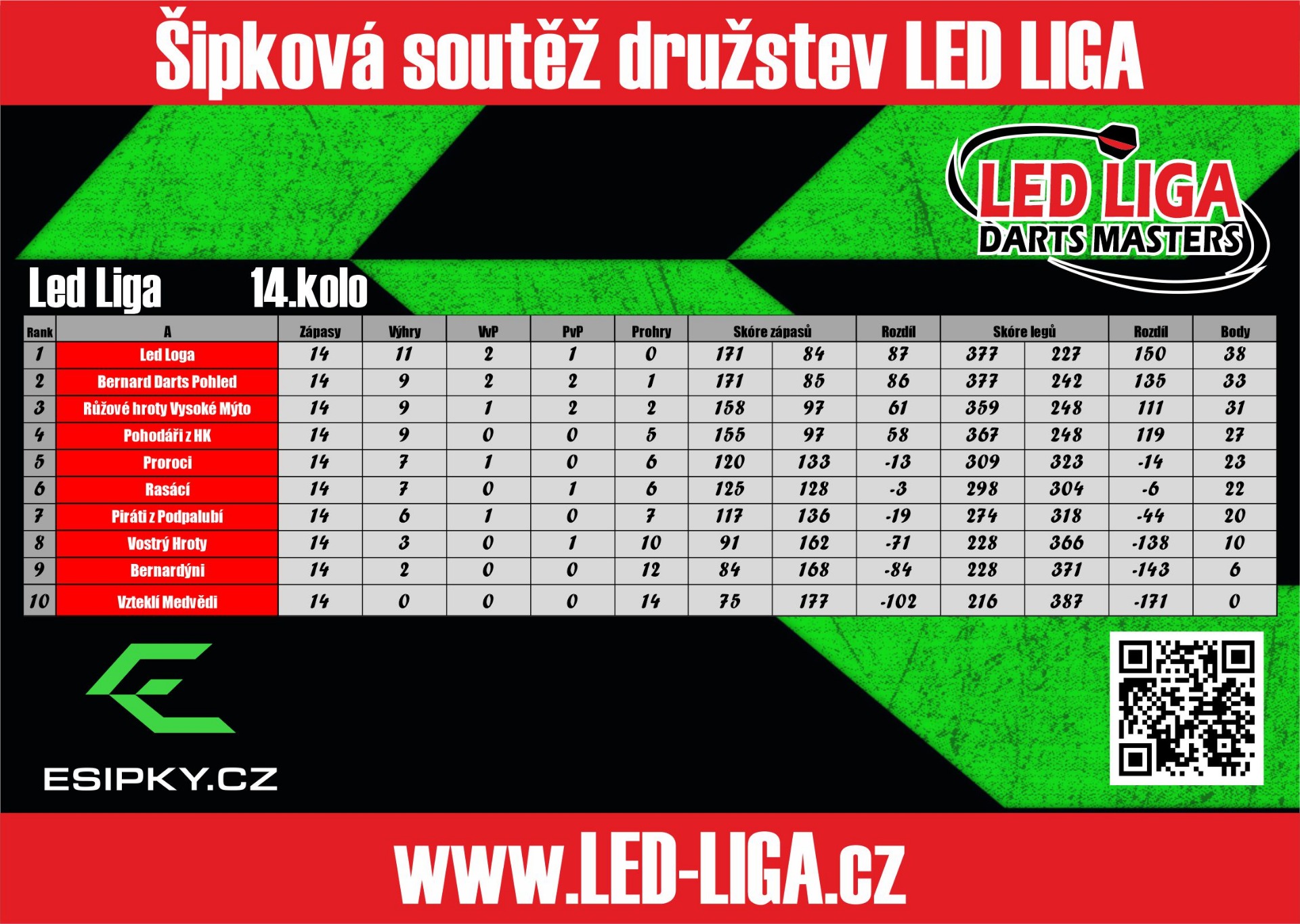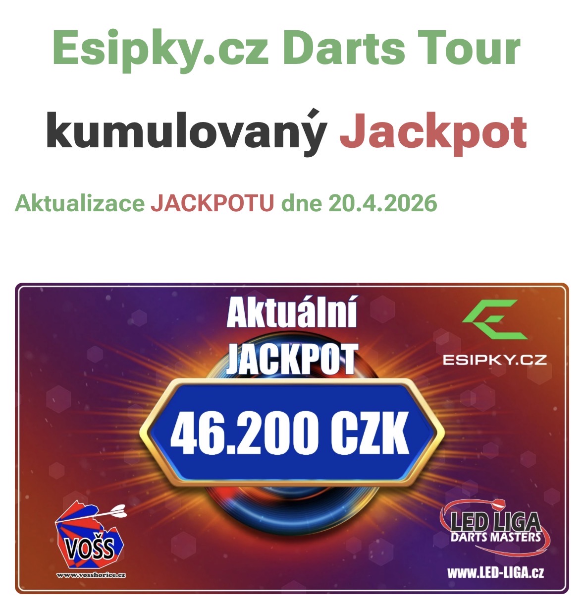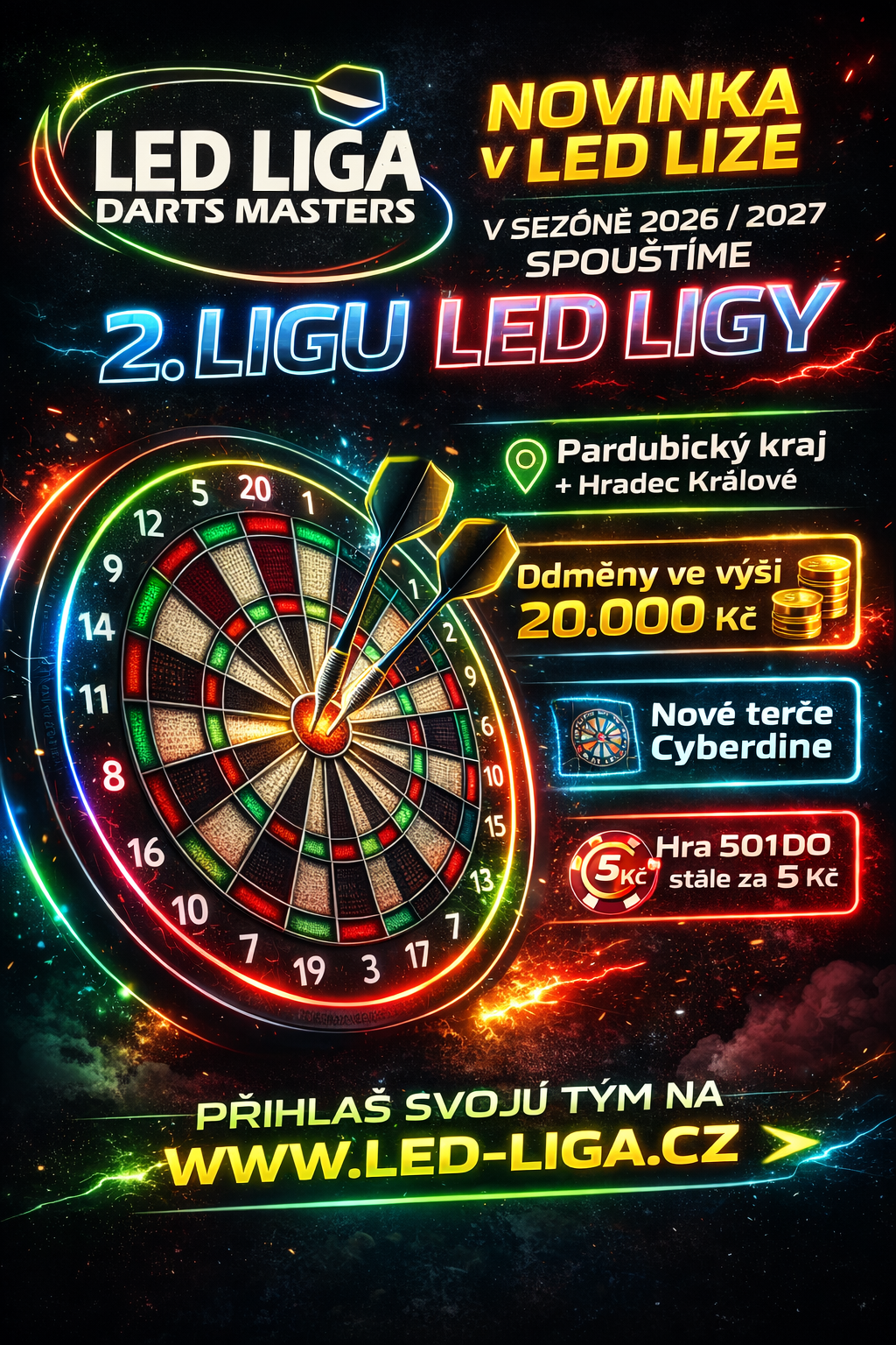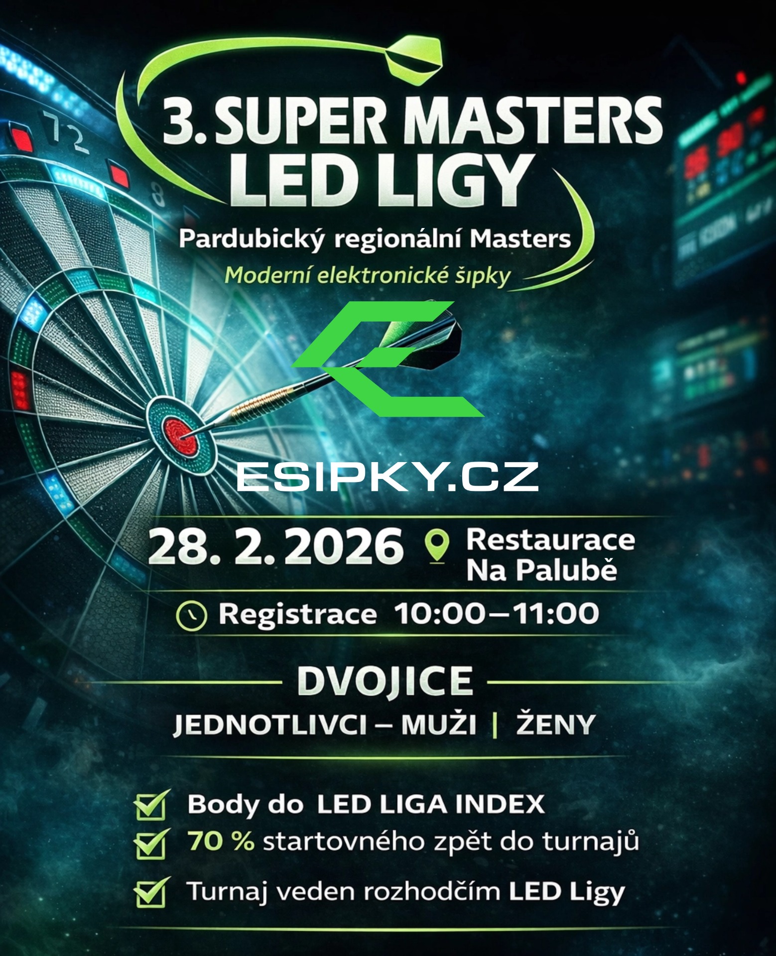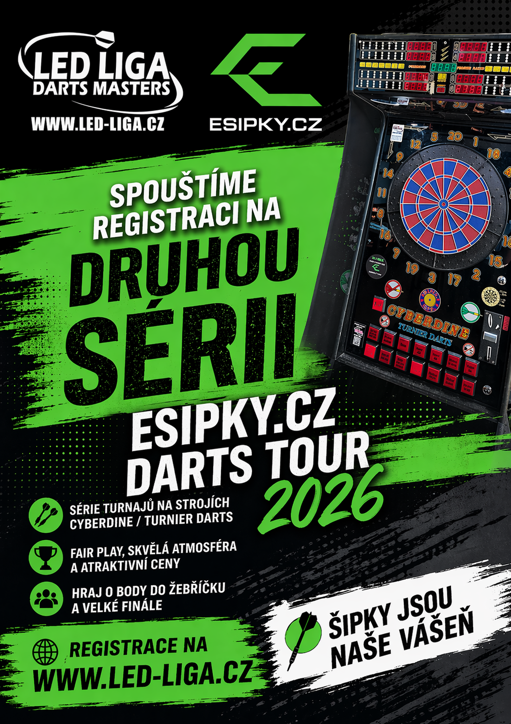 Generálním partnerem šipkové soutěže družstev LED LIGA se pro sezónu 2025/2026 stávají E-SIPKY.CZ.