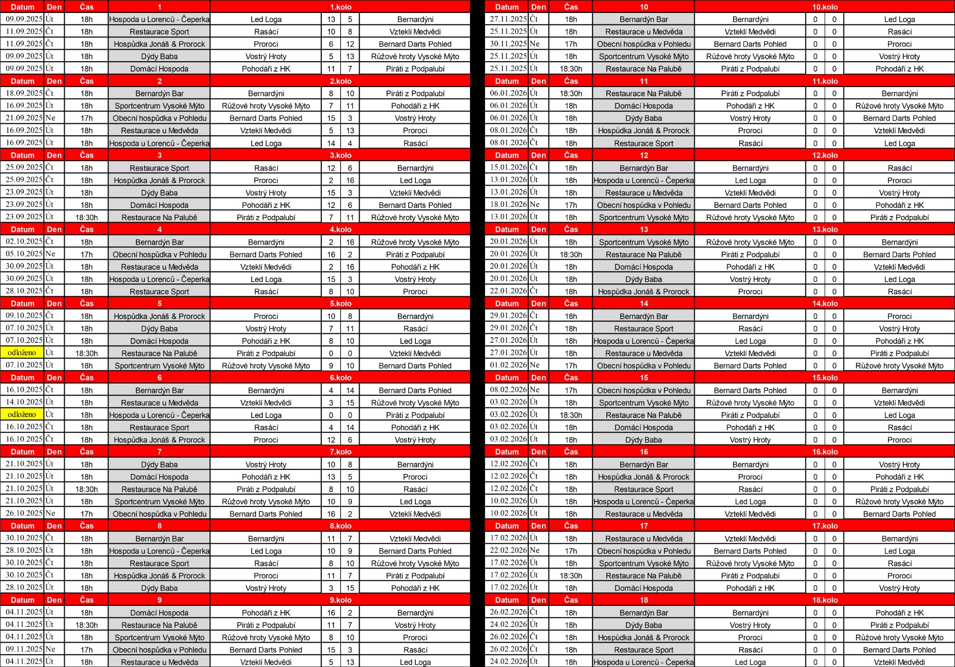 ROZPIS ŠIPKOVÝCH UTKÁNÍ 2025/2026: