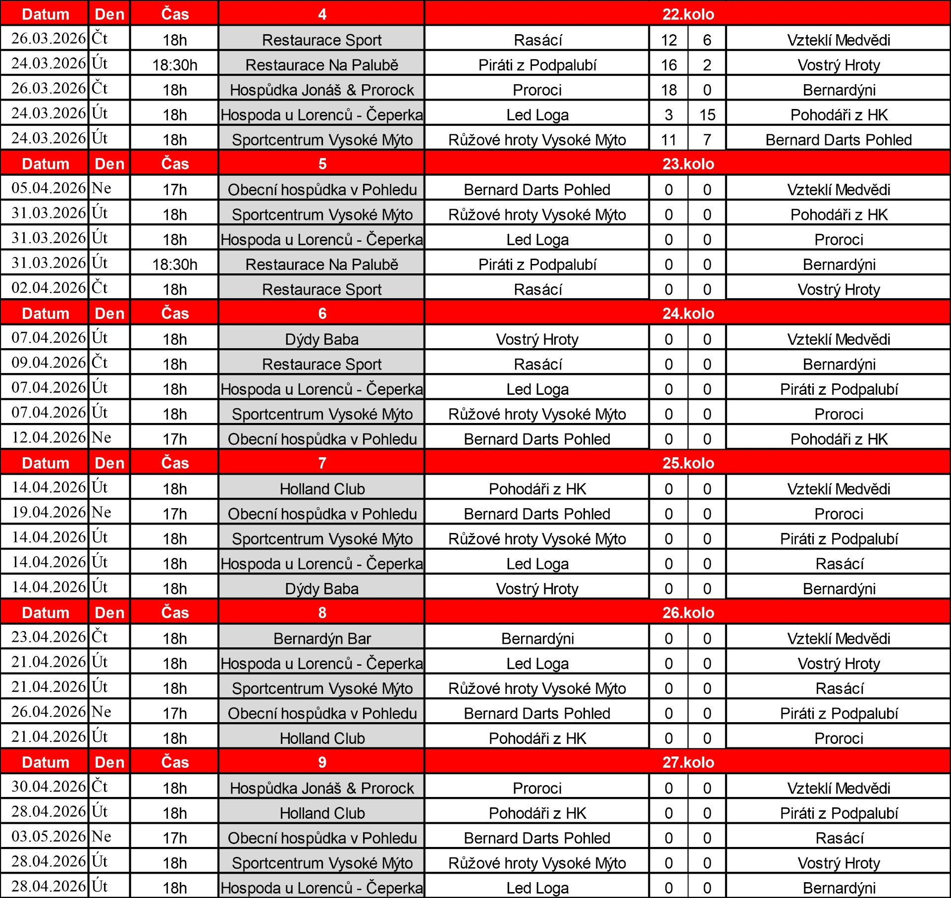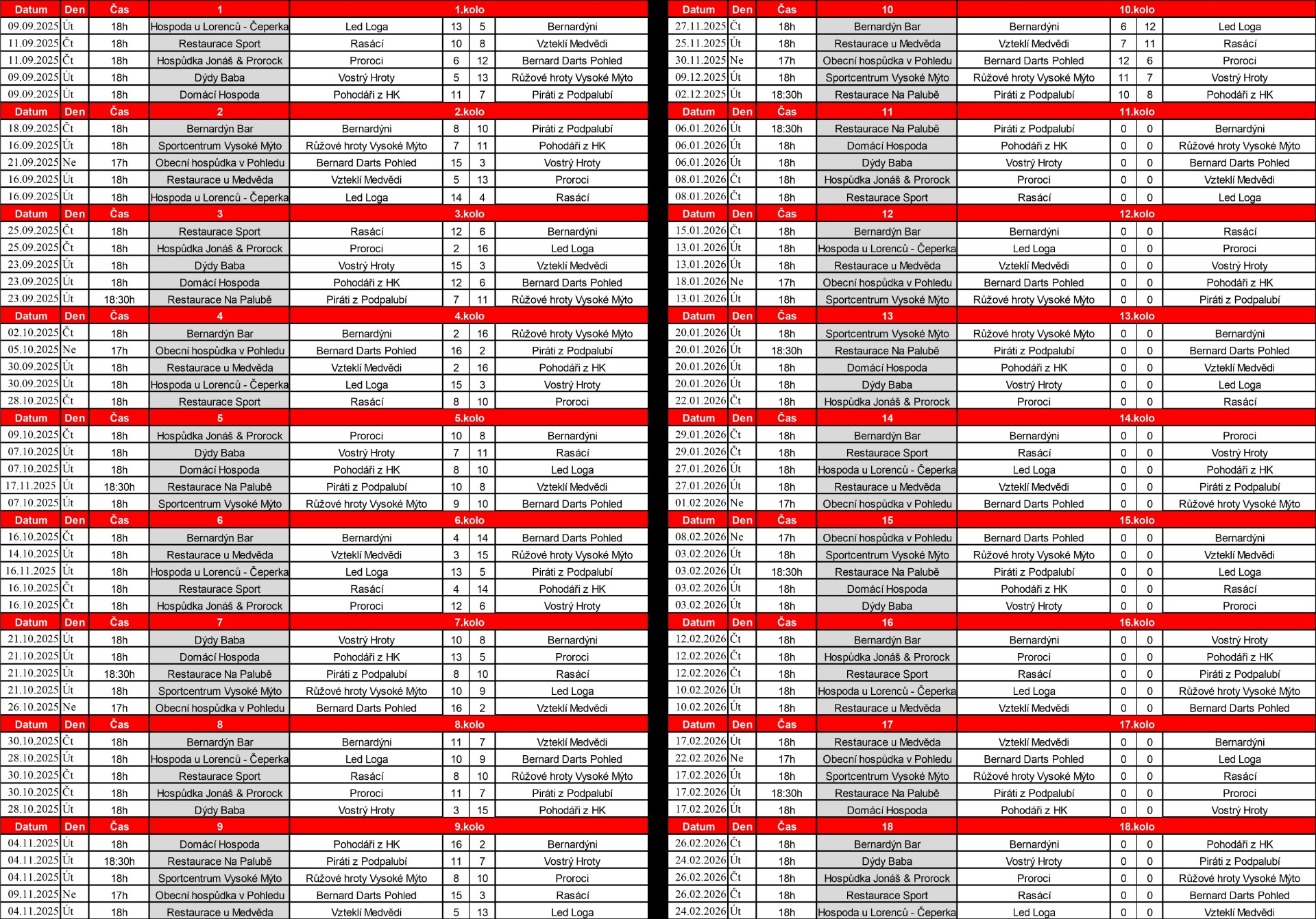 ROZPIS ŠIPKOVÝCH UTKÁNÍ 2025/2026: