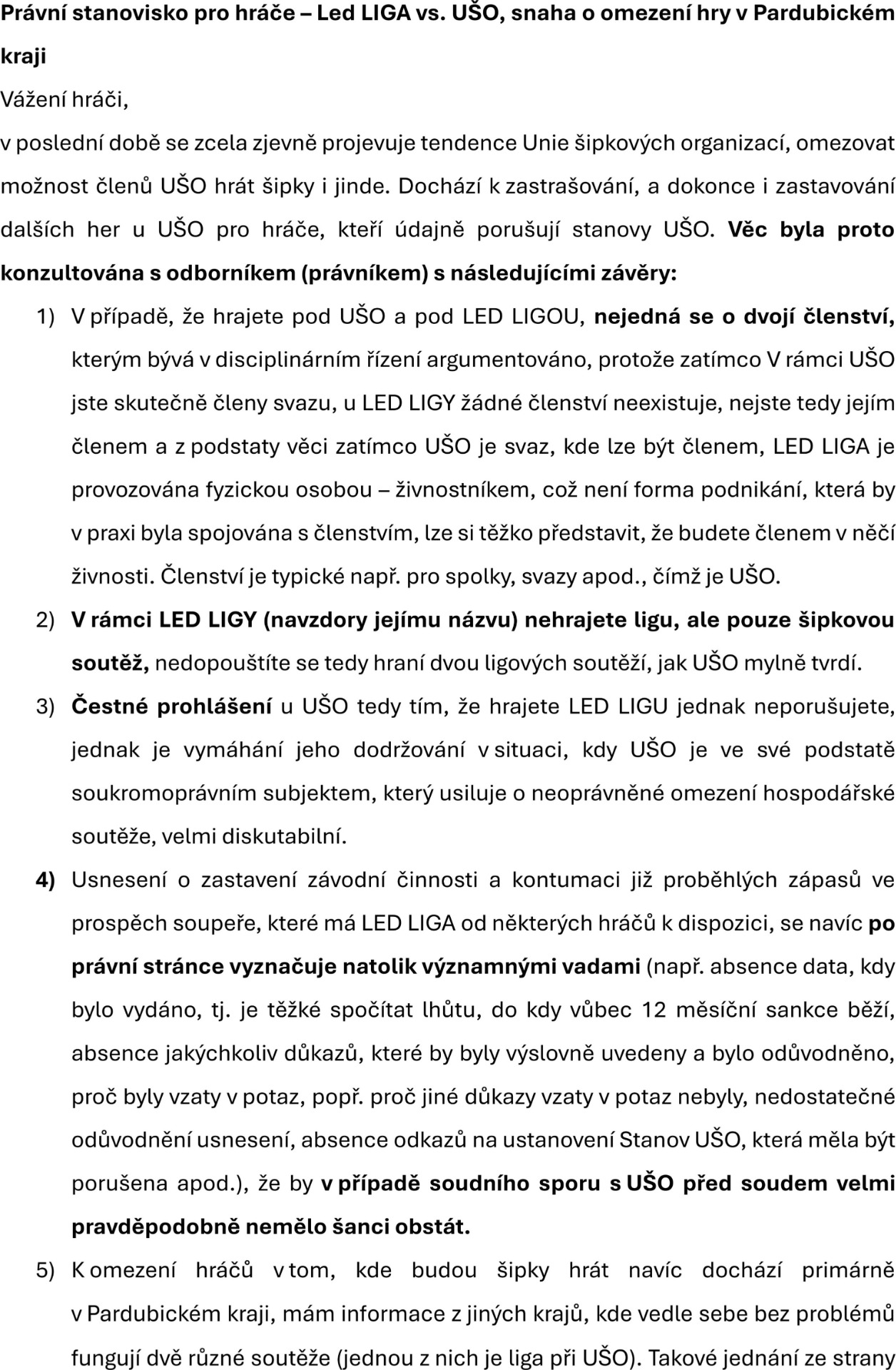 Článek LED LIGA vs. UŠO.